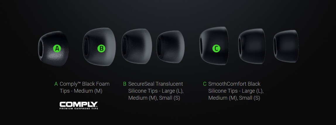 For even more customized levels of comfort or acoustic options, take your pick from 6 additional sets of silicone tips.
