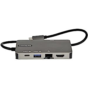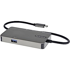 This USB-C multiport adapter features both an HDMI and VGA port providing you with two single video output options for your boardroom presentations or your workstation setup including support for an ultra-wide monitor.