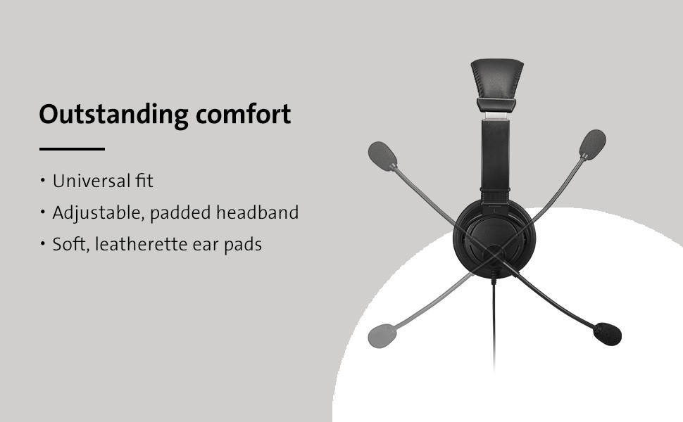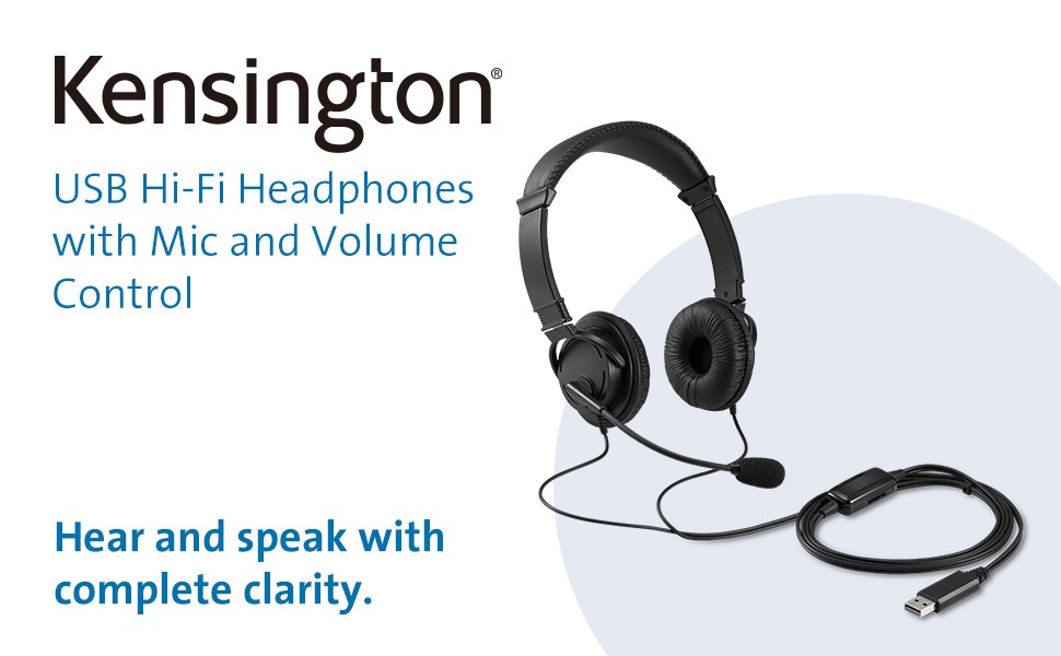 An exceptional value, the USB Hi-Fi Headphones with Mic and Volume Control deliver high-quality stereo sound, wide dynamic range, and deep bass thanks to 40mm drivers. Additional features include an adjustable, padded headband that fits heads of all ages; plush foam ear pads wrapped in a soft leatherette for hours of comfortable use; a noise-canceling microphone; easily adjustable volume level and mic mute controls; robust design, with a six-foot USB cord for flexible movement; a safe listening limiter to help protect ears from excessive loudness; and multi-device compatibility (Windows, Mac, Chromebook).
