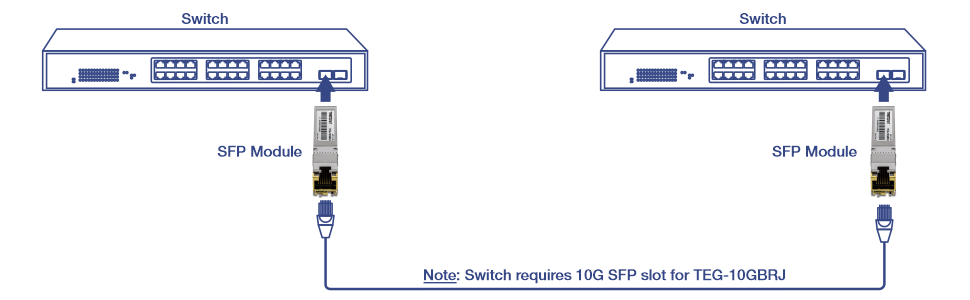 The 10G RJ-45 copper SFP+ spans distances up to 30m (98 ft.) and supports up to 10Gbps speeds.