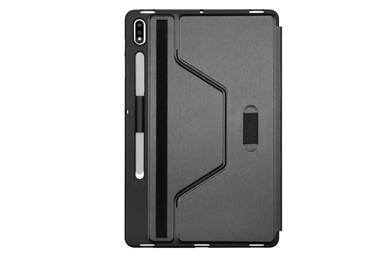 A simple flip transforms your case into a sturdy stand for comfortable typing. Flip again for easy viewing with virtually infinite viewing angles. Enjoy added ease and convenience with the elastic stylus holder and S Pen® charging port, keeping your S Pen ready to go or your stylus close at hand. Precision cutouts offer easy access to your controls, ports, and camera lenses. Even your audio gets a boost with dedicated speaker ports.