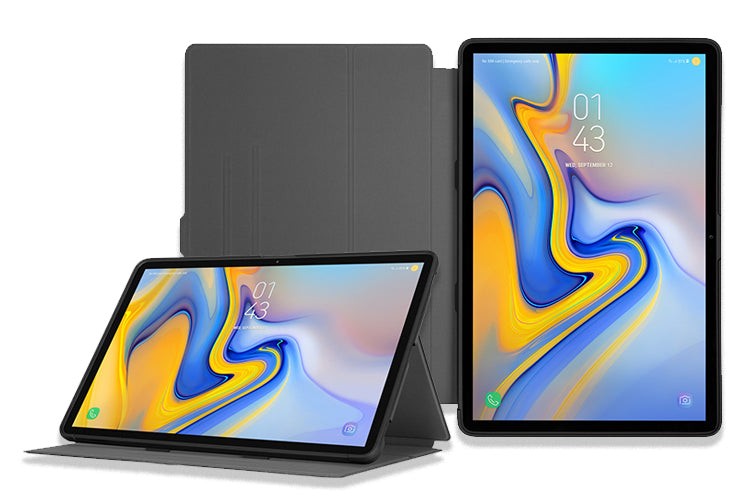The non-slip interior lets you position your Samsung Galaxy® Tab S7+ 12.4”, New Tab S7 FE 12.4”, or Tab S7 FE 5G 12.4” in an infinite range of reading or viewing angles for watching videos or interacting with your screen, or flip the cover back for a comfortable typing angle.