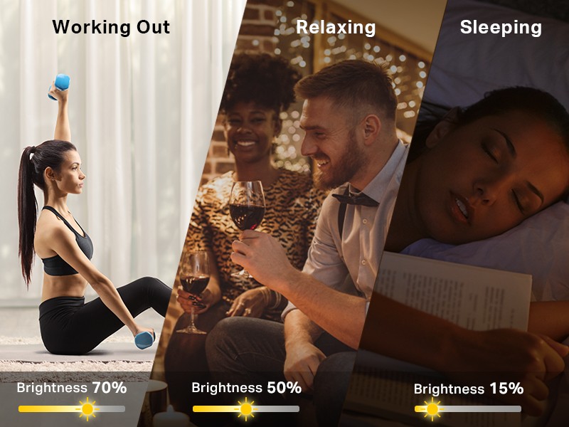 Control the brightness and set the ambiance for any mood or activity via the Kasa app.