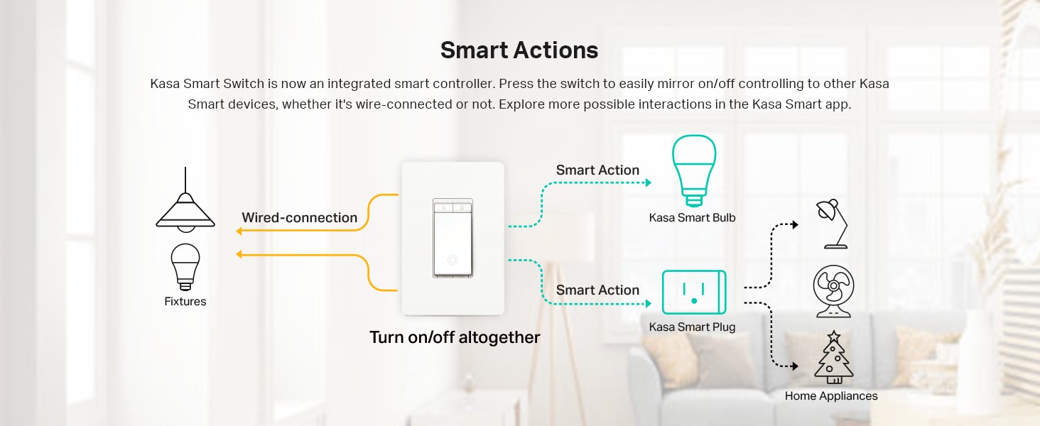 Combine your smart switch with other Kasa Smart devices for seamless control with a single tap on Kasa app.