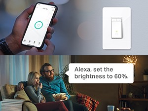 Whether you use your preferred Smart Assistant or the Kasa app, control the Kasa Smart Dimmer Switch your way.