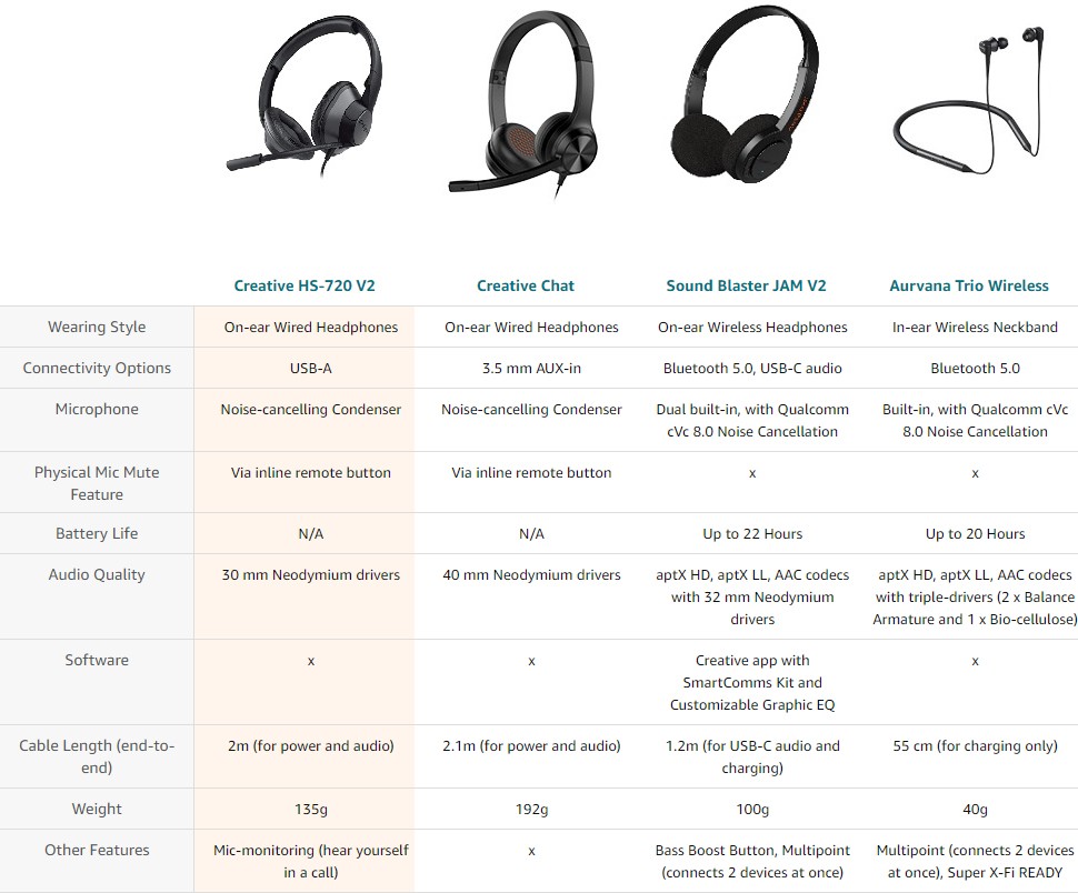 Designed to be lightweight (135g / 4.76 oz), the Creative HS-720 V2 rests comfortably on your head and ears without weighing you down even during long meetings.