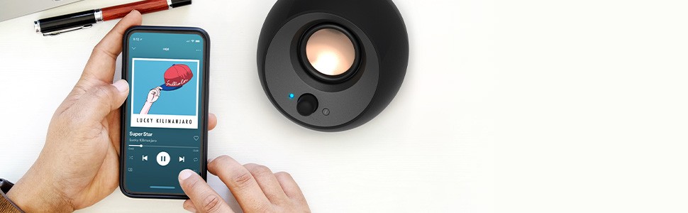 Utilizing just a single USB-C connection for both audio and power, enjoy amplified USB audio from Creative Pebble V3 with doubled audio intensity as well as improved acoustics performance! The 2.0 speakers also offer a wireless connectivity option* so you can enjoy wireless streaming from mobile devices with the latest Bluetooth 5.0.