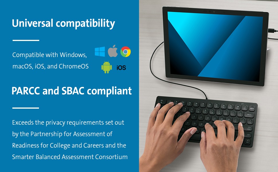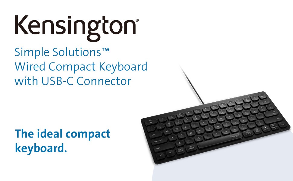 With full-size, responsive scissor keys for a comfortable and precise typing experience and 12 shortcut keys to quickly navigate common keyboard commands, the Simple Solutions™ Wired Compact Keyboard with USB-C Connector is the ideal compact keyboard to help conserve valuable desk space. Features include a caps lock LED indicator for more efcient typing; durable design for everyday use; plug and play ease without the need for batteries or charging; and compatibility with Windows, macOS, iOS, and ChromeOS. Exceeds the privacy requirements set out by the Partnership for