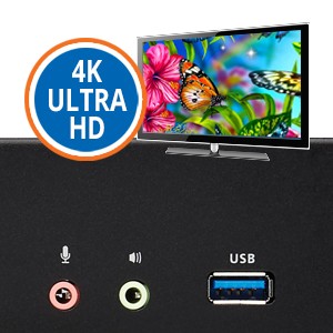 The B006-DP2UA2 supports 4K resolutions up to 3840 x 2160 (UHD) and 4096 x 2160 (DCI) at 60 Hz. Two 3.5 mm audio jacks on the unit’s front panel accept connection of a microphone and speakers for use with 2.1-channel surround sound.