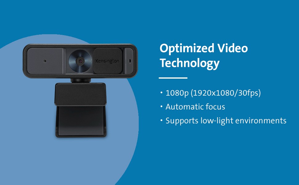 camera placement, and low light imaging. The Kensington W2000 1080p Auto Focus Webcam is optimized for today’s most popular video