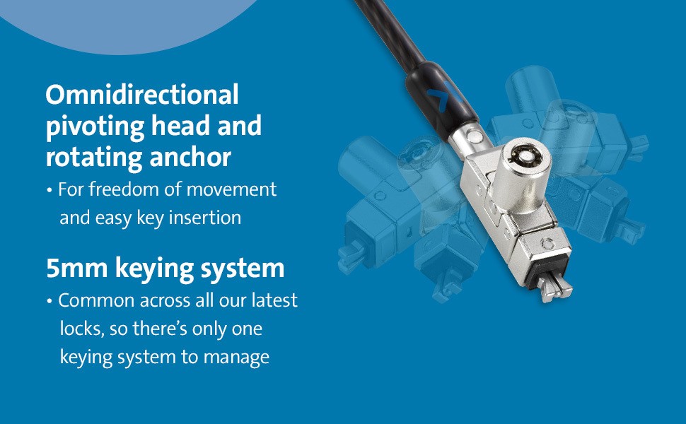 Slim lock head allows ultra-thin and 2-in-1 laptops to lie flat and stable