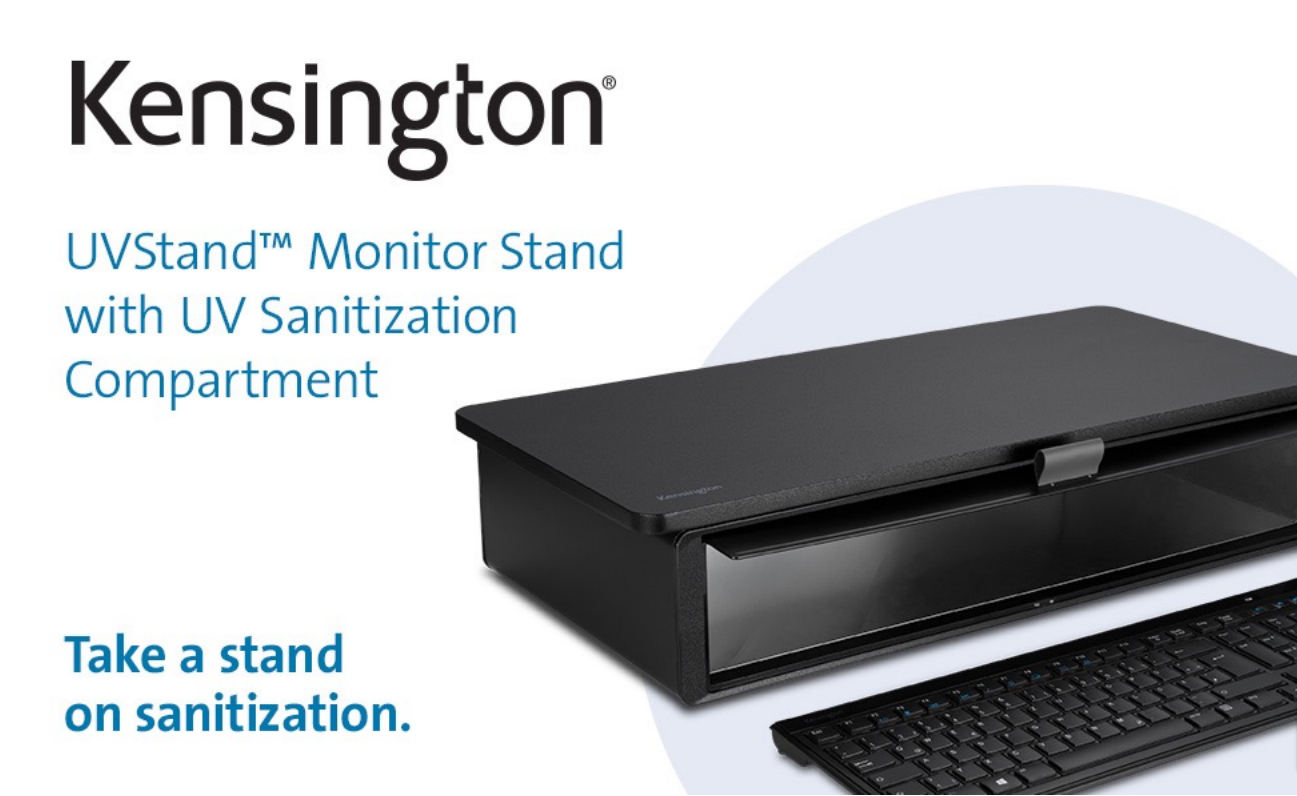 When used as directed, the UVStand⢠Monitor Stand with UV Sanitization Compartment safely, easily, and efficiently helps to sanitize keyboards, mice, trackballs, mobile phones, and other devices, while promoting healthy posture and optimal comfort. The spacious sanitization compartment accepts most full-sized keyboards in addition to other devices, and can be used to store desktop items when not sanitizing, for a more clutter-free desktop.