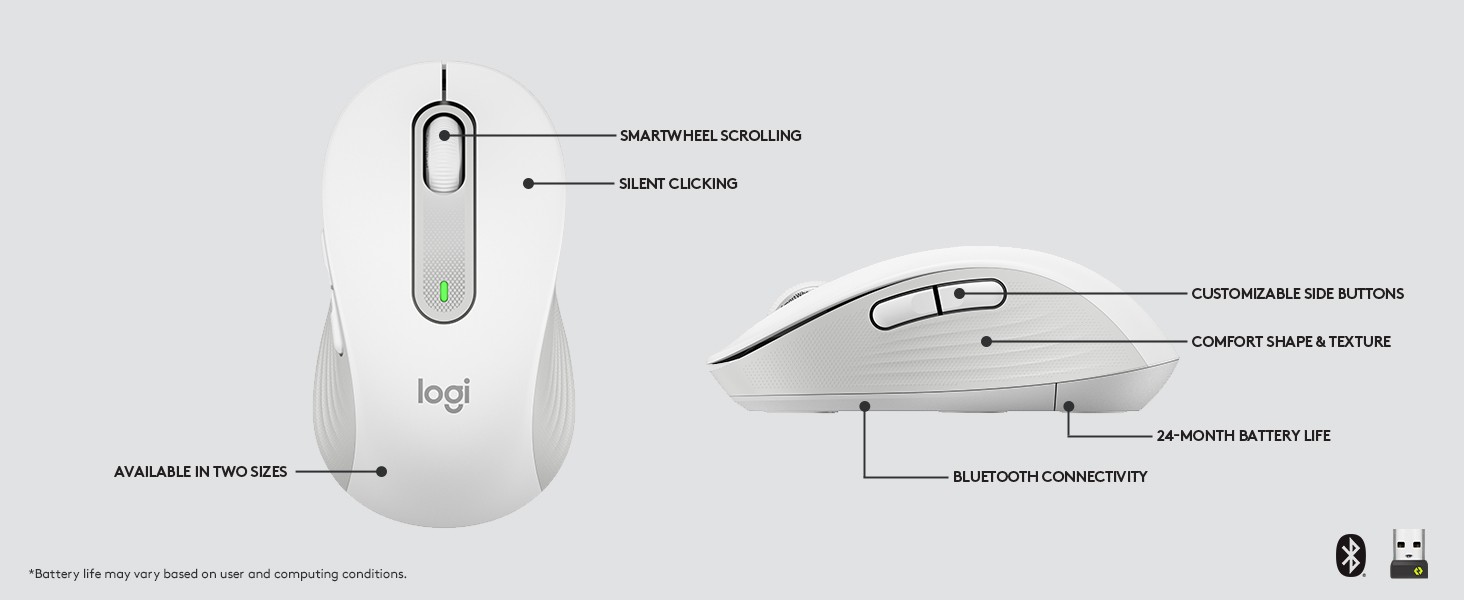 Enjoy 90% less click noise* thanks to Logitech’s SilentTouch technology. Less noise means more focus on the task at hand.