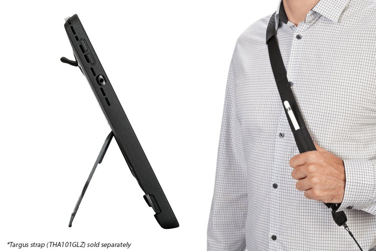 With its elastic hand strap, convenient kickstand, and compatibility with the Targus Shoulder Strap (THA101GLZ, sold separately), this case allows you to seamlessly carry and stand your Surface 8 anywhere you go.