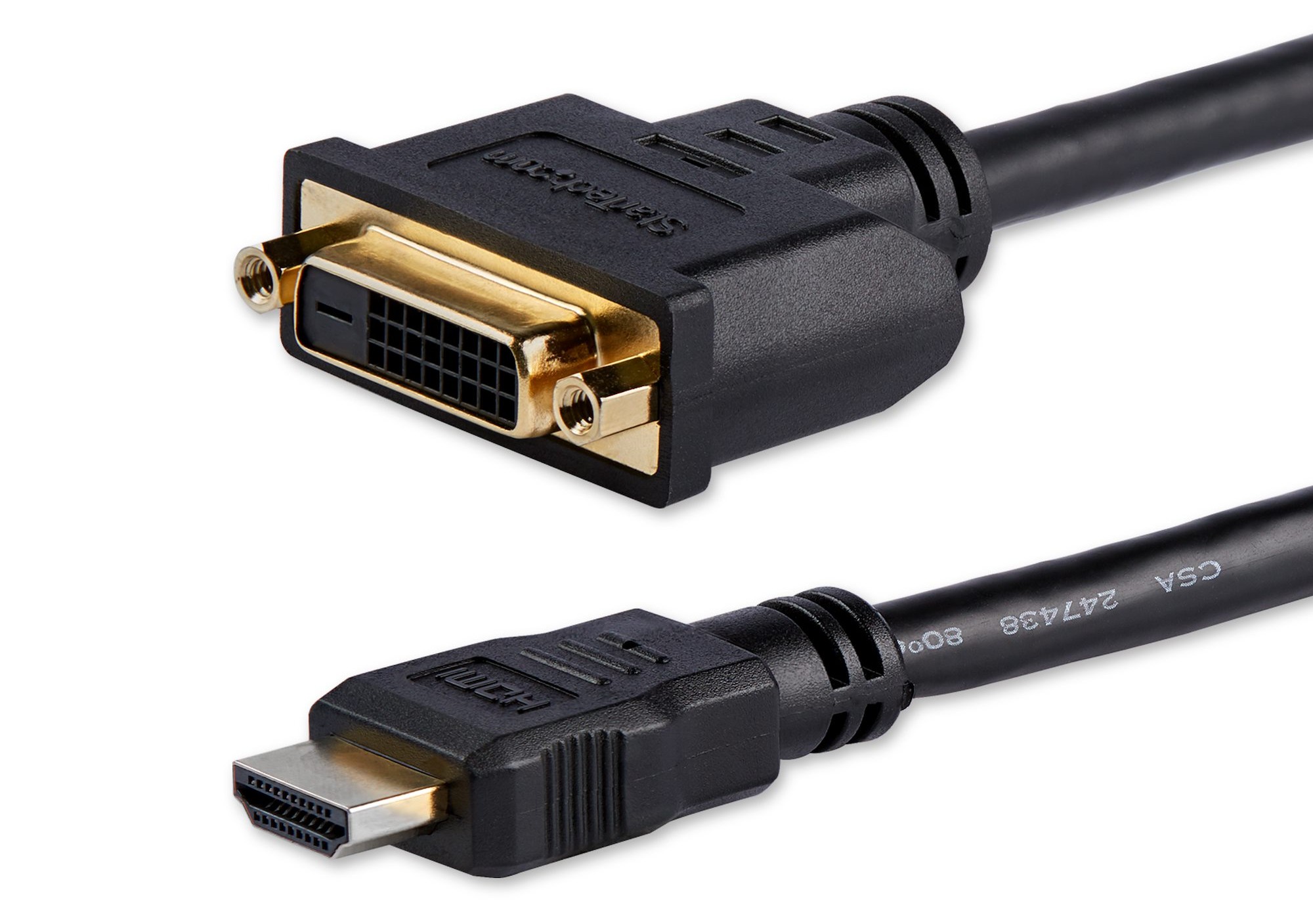 Connect your HDMI capable source to a DVI digital monitor, TV or projector, and share your presentations, pictures and videos. Simply plug any one of our male-to-male DVI-D cables, such as our 3ft DVI-D single-link cable 3ft DVI-D single-link cable (DVIMM3) into the adapter and connect the adapter to your device.