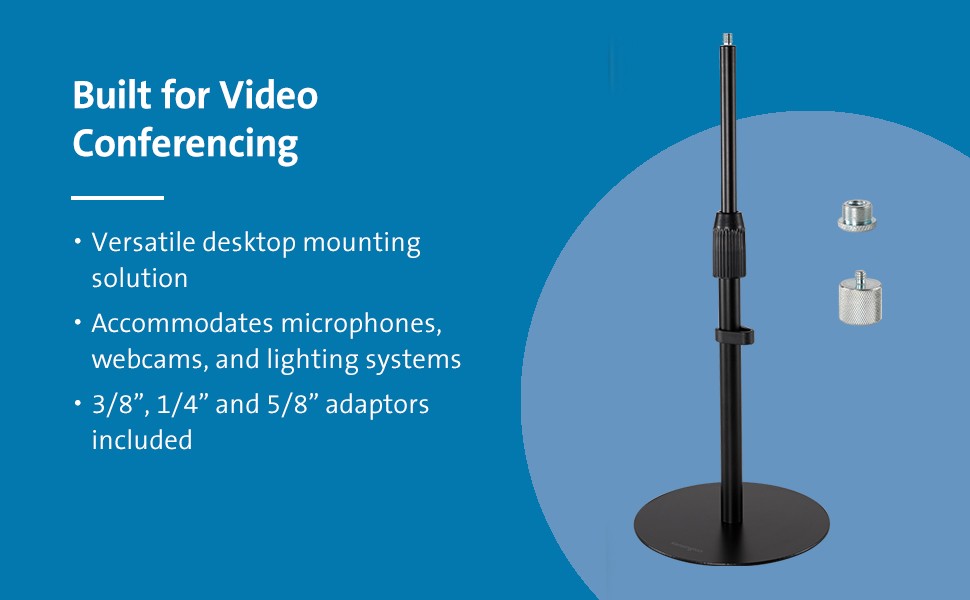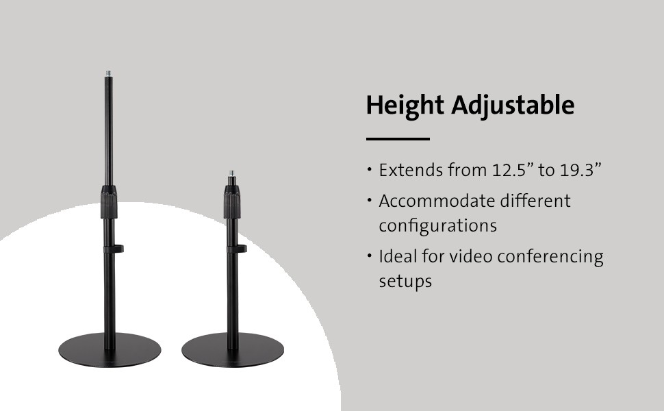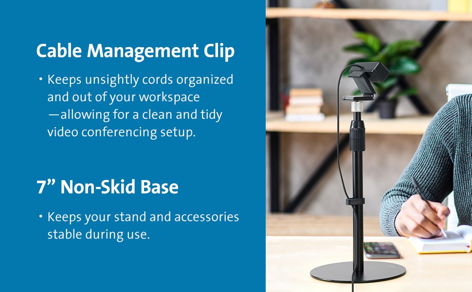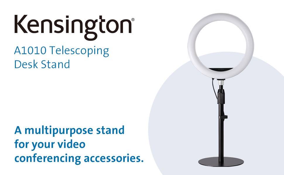 The Kensington A1010 Telescoping Desk Stand is a professional desktop mount optimized for microphones, webcams, and lighting systems—the perfect accessory for keeping your video conferencing setup organized and professional. The adjustable height stand, non-skid base, and cable management clip support a productive and tidy workspace.