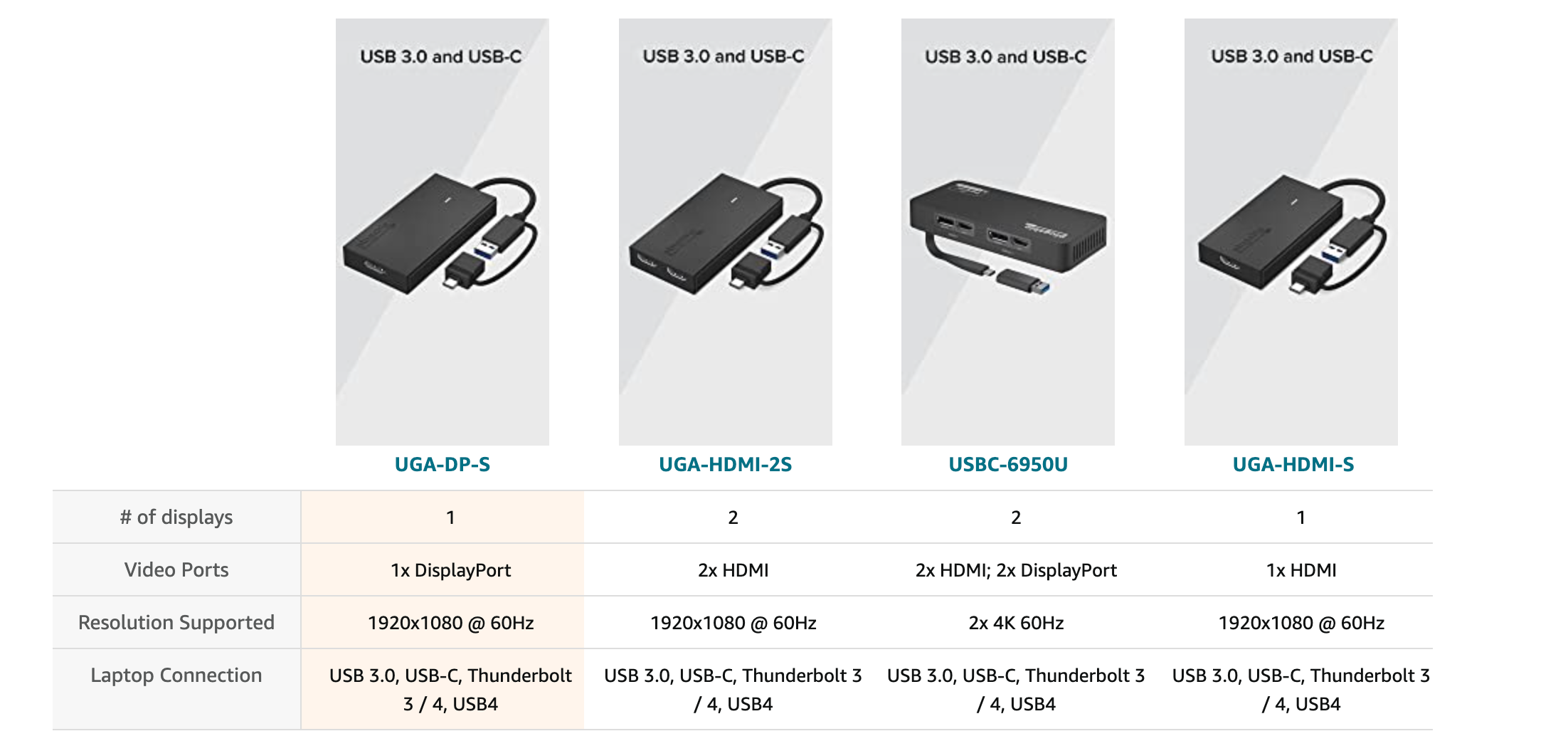 A hybrid 2-in-1 cable takes the guesswork out of picking an adapter that matches your computer. The UGA-DP-S works with the ports you have now, and the ports you’ll have on your next computer—USB 3.0, USB-C, USB4, even Thunderbolt 3 and Thunderbolt 4. It’s compact, too, so it’s as portable as your laptop.