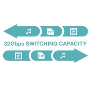 Gigabit ports provide high-speed network connections to 16 devices, and a 32Gbps switching capacity allows data traffic to flow smoothly, reducing traffic bottlenecks.