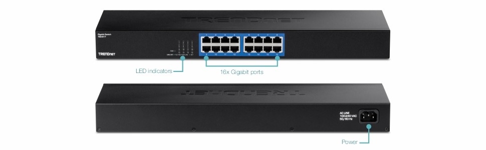 With a sturdy metal housing and included rackmount brackets, this switch is well-suited for 19” 1U rack installations.