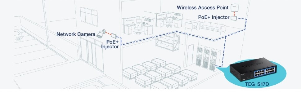 Gigabit ports provide high-speed network connections to 16 devices, and a 32Gbps switching capacity allows data traffic to flow smoothly, reducing traffic bottlenecks