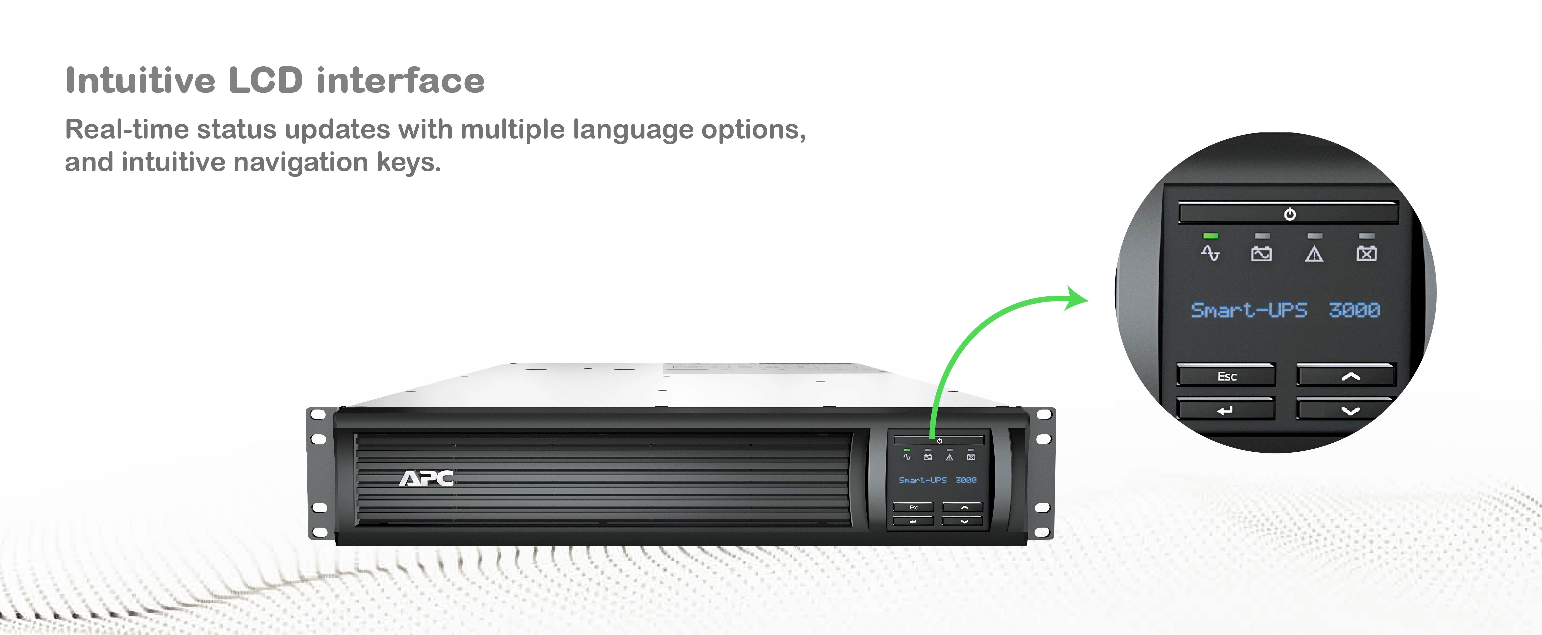 Graphical LCD display Quick, easy-to-read, intuitive LCD provides information about the utility and UPS conditions. |