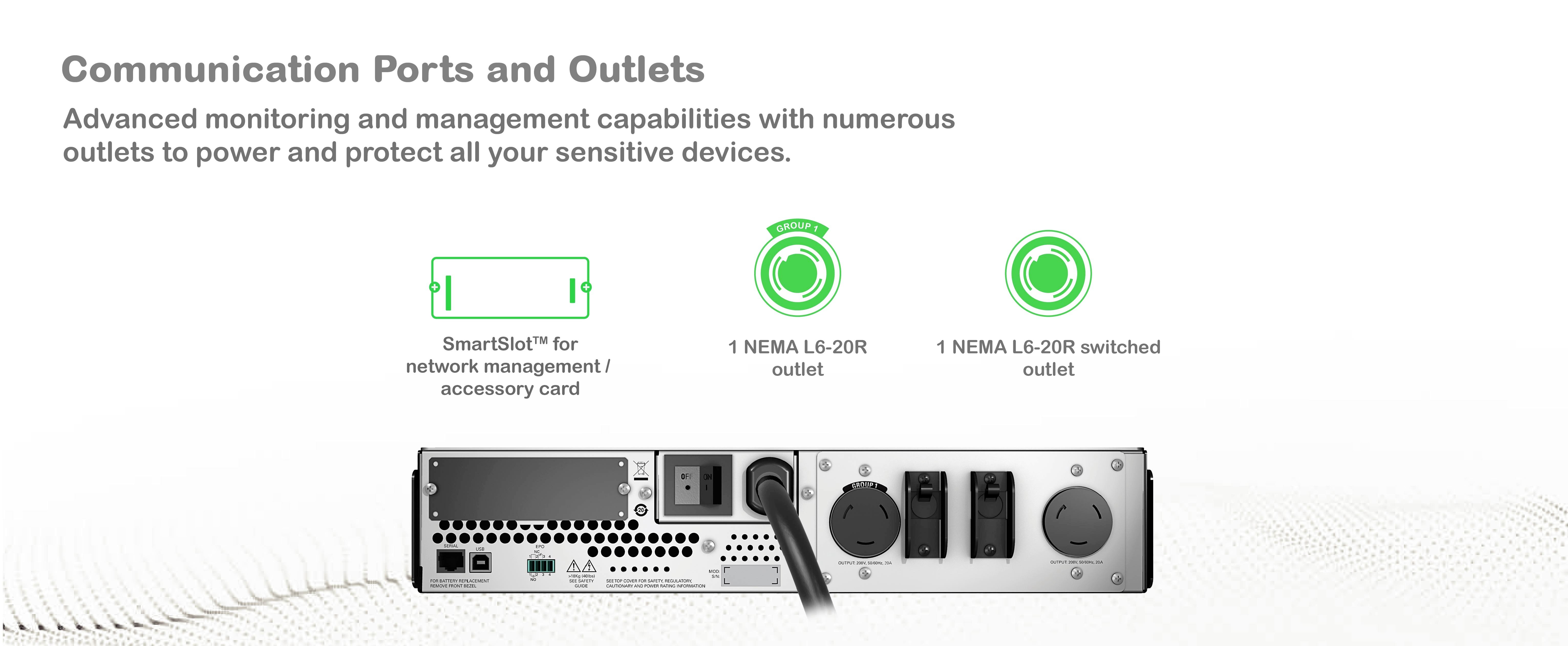 SmartSlot™ for network accessory card Add a network accessory card or purchase an -NC model with a pre-installed AP9641 network card. |