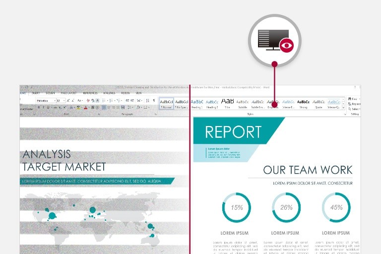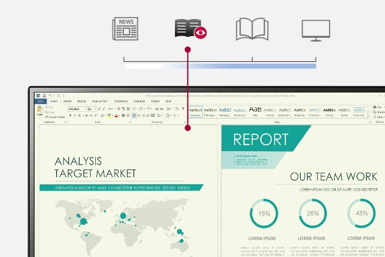 To help lessen eye fatigue and provide eye comfort while reading documents on a monitor, Reader Mode adjusts color temperature and luminance similar to reading a paper book