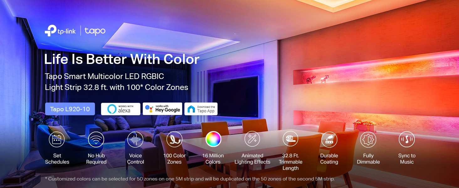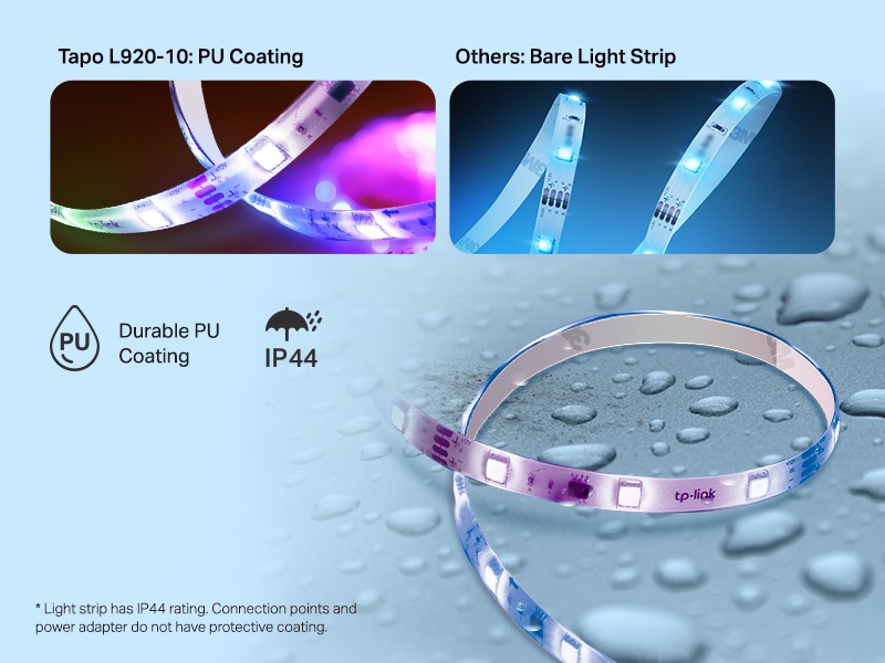 Featuring durable high-quality PU coating along the length of the LED strip, enjoy IP44 protection from moisture and dust so you can deploy with peace of mind. Backed by 22 years of creating exceptional products, Tapo products are built to last.