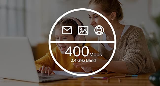 2.4GHz band features longer range than the 5GHz, allowing more WiFi coverage with speeds up to 400Mbps in your home.