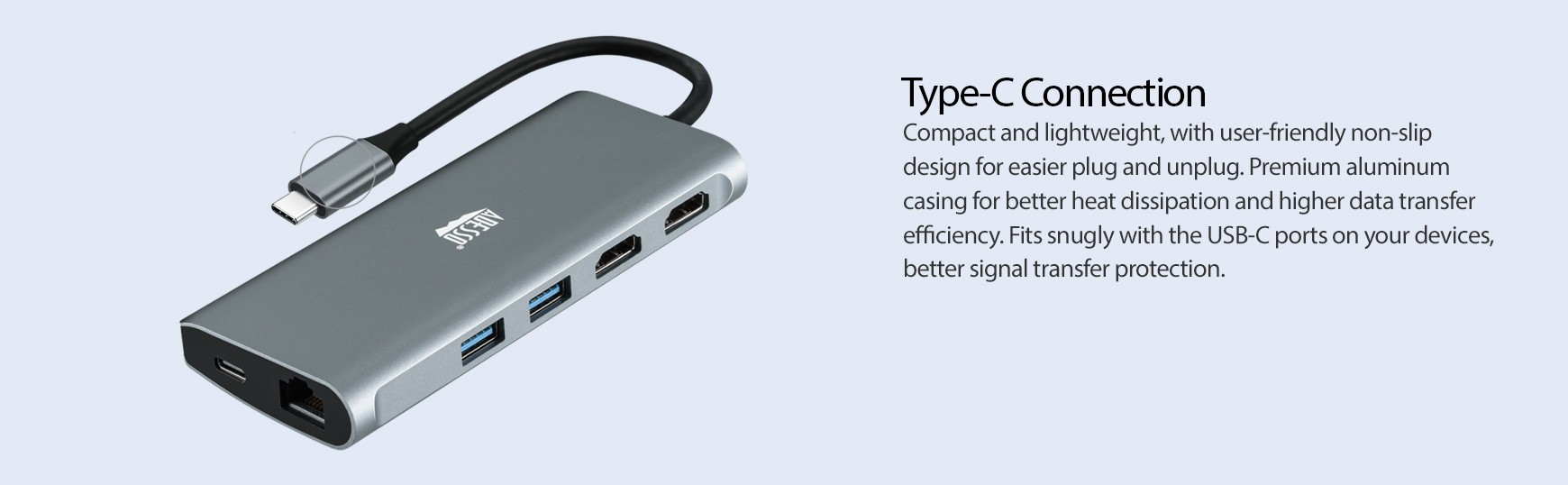 Compact and lightweight, with user-friendly non-slip design for easier plugging in and unplugging. Premium aluminum casing for better heat dissipation and higher data transfer efficiency. Connects snugly into the USB-C port on your device, providing better signal transfer protection.