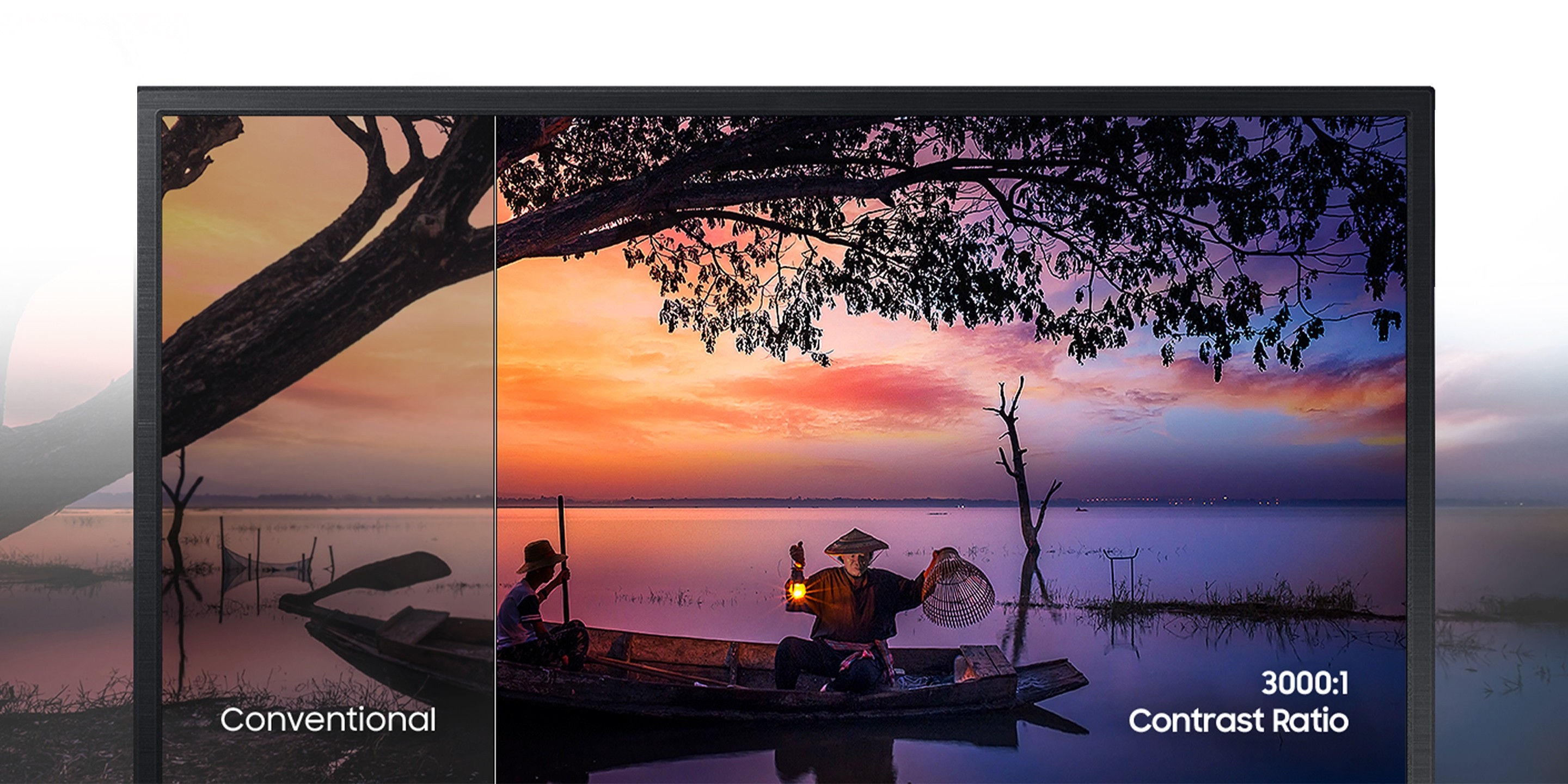 Every scene, incredibly defined. Samsung's innovative VA Panel technology delivers an outstanding 3000:1 contrast ratio with deeper blacks and more brilliant whites. Minimal light leaks from corner to corner, so even very dark or bright images are crystal clear on your screen.