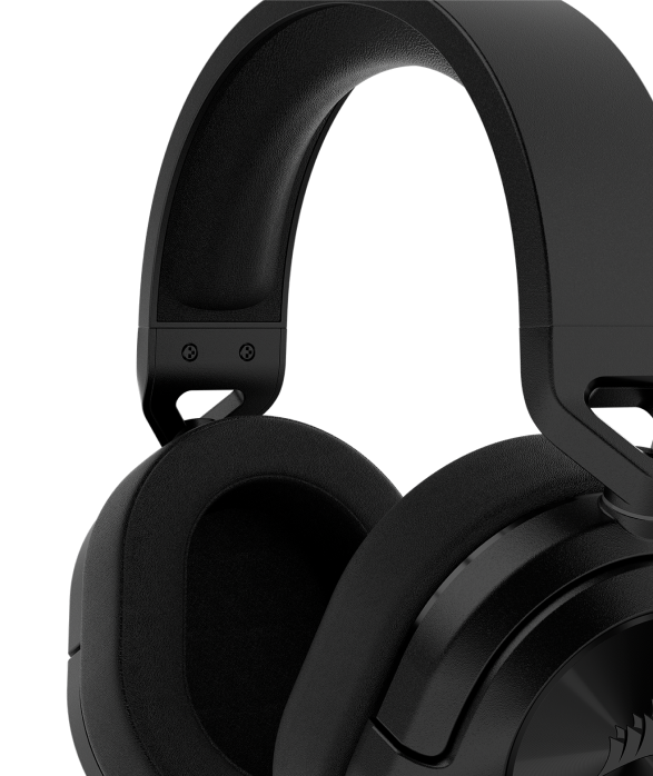 The CORSAIR HS65 SURROUND Gaming Headset delivers all-day comfort and sound with memory foam leatherette ear pads, lightweight aluminum-reinforced construction, and Dolby® Audio 7.1 surround sound on PC and Mac.