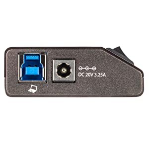 The USB hub is self-powered, with an included 65W power adapter. This enables all seven ports on this USB hub to support BC 1.2, providing 1.5A (7.5W) of power simultaneously (52.5W total), making it ideal to charge battery powered USB devices like Smartphones, and Tablets, while also providing a data connection.