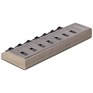 The seven ports on the USB Hub feature a power switch to turn off the computers data/power connection to the attached device when it's not being used.