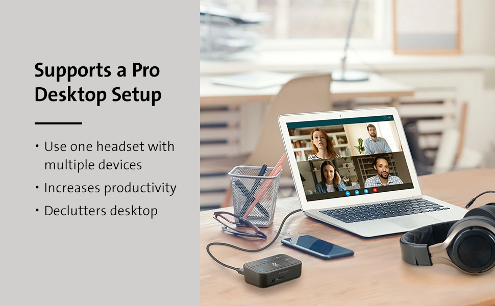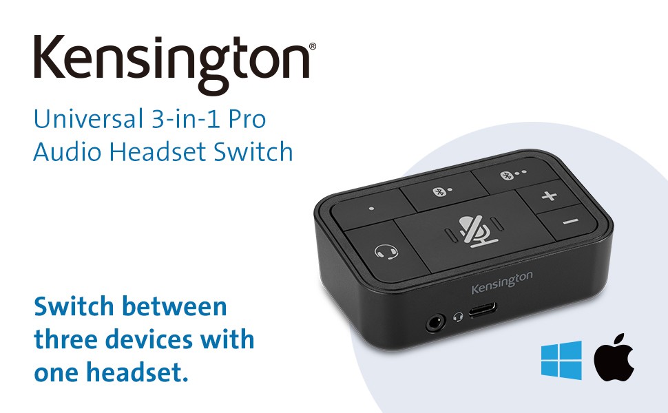 Professionals working in the ofce, at home or on the move frequently need to switch between audio on their laptop, phone or other devices. Whether it is taking a video call, making a phone call or listening to music, switching between different devices can be complex and time consuming. Kensington’s Universal 3-in-1 Pro Audio Headset Switch enables professionals to use a single wired or wireless headset across three different audio sources. Users can switch seamlessly between their laptop, phone or tablet, enhancing their productivity. Compatible with platforms including Microsoft Teams, Google Meet, Zoom and WebEx, the Universal 3-in-1 Pro Audio Headset Switch features convenient push-button controls for device switching, volume control and muting to deliver a professional audio experience.