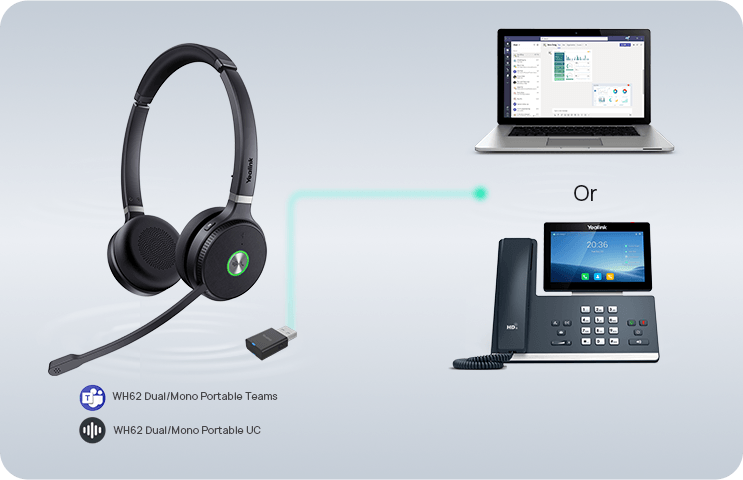 Compatible with diverse platforms, WH62 portable perfectly matches your UC platform, delivering consistent call experience, better communication quality and lower IT costs. Connected with PC or desk phone, it boosts your productivity with the smooth user experiences. Certified for Microsoft Teams, it is also designed with a dedicated Teams button for activating Microsoft Teams with one touch.