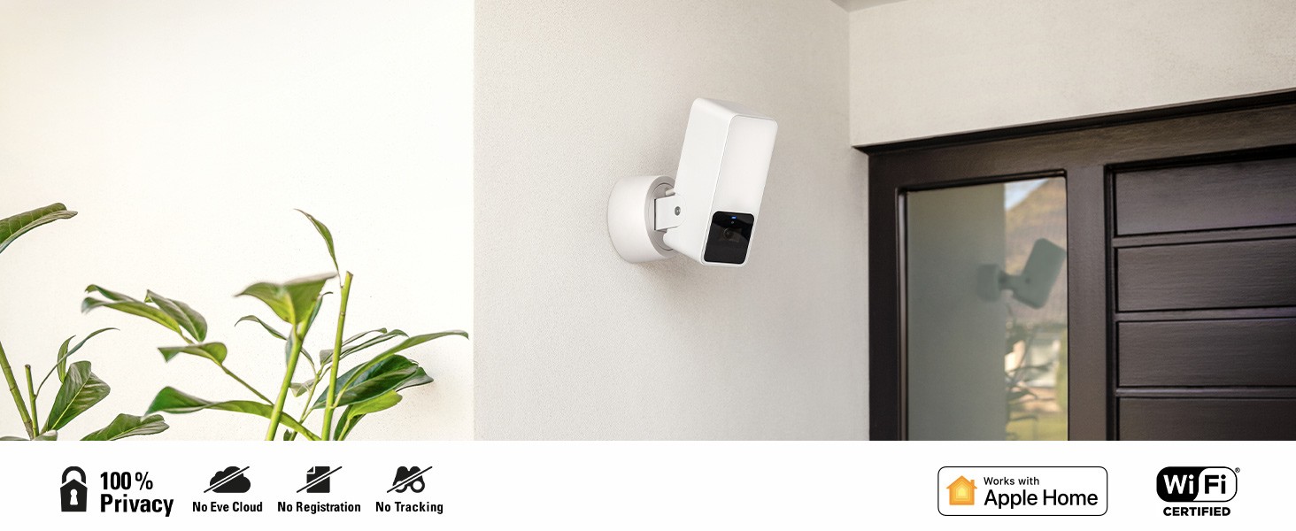 Keep a close eye on your home around the clock. Eve Outdoor Cam packs advanced technology into a sleek metal enclosure and is designed exclusively for Apple HomeKit Secure Video, built from the ground up to keep your data secure and your private space safe.