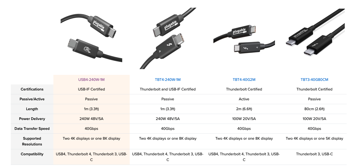 This cable is USB-IFcertified, and that comes with some incredible benefits. Thunderbolt 4, Thunderbolt 3, USB4, or USB-C, it doesn’t matter, The Plugable Thunderbolt 4 EPR cable will work. Even at a full meter (3.3ft), you won't see a decrease in performance.
