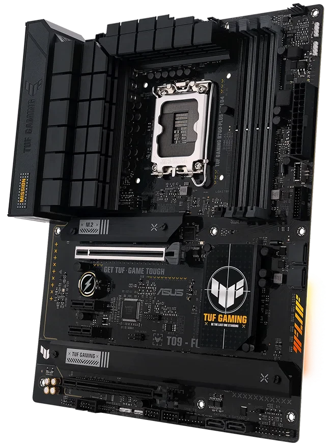 TUF GAMING B760-PLUS WIFI D4 takes all the essential elements of the latest Intel ® processors and combines them with game-ready features and proven durability. Engineered with military-grade components, an upgraded power solution and a comprehensive cooling system, this motherboard goes beyond expectations with rock-solid performance for marathon gaming. TUF GAMING motherboards also undergo rigorous endurance testing to ensure that they can handle conditions where others may fail. Aesthetically, this model incorporates an embossed nameplate and geometric design elements to reflect the dependability and stability that defines the TUF GAMING series.