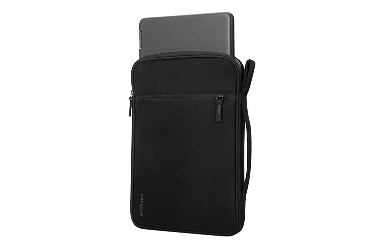 Protect your laptop and necessary accessories with the Targus® 11–12” Sideloading Sleeve. Featuring a single, padded main compartment with soft interior lining, the sleeve safeguards your tech from everyday bumps and scratches, and has a reinforced edge along the exterior for added protection. It has a zippered pocket on the front to help keep your accessories handy, and a small, clear pocket on the back to conveniently hold your ID card. It’s soft, slim design makes this sleeve suitable to tote in hand or slip into another bag.