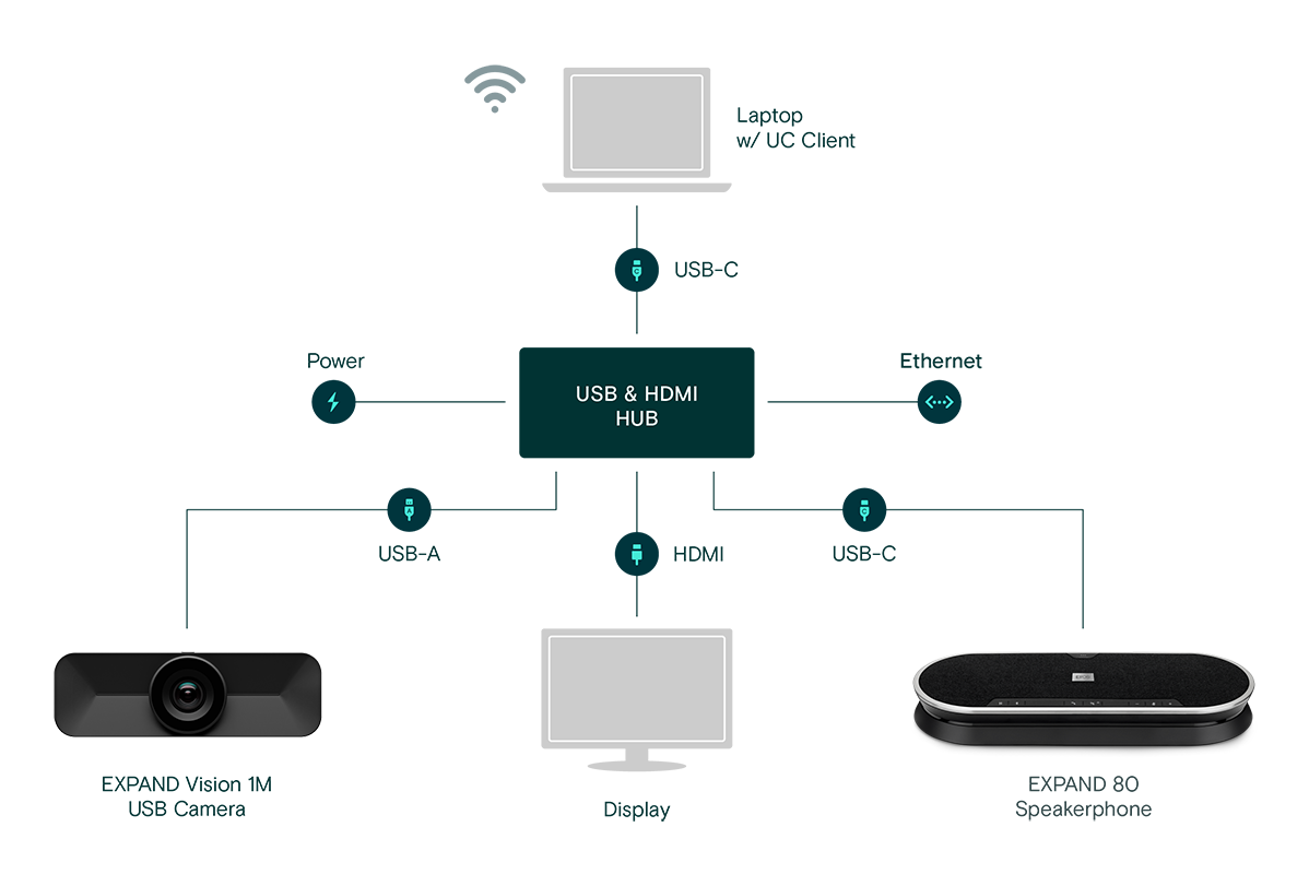 Enjoy the convenience of an integrated solution. Connect EXPAND Vision 1M to a computing unit to enjoy great video, sound and easily join meetings.