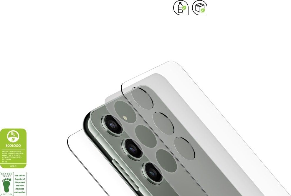 The use of conscious materials makes this our most eco-friendly smartphone ever. 1,2 Recycled glass and PET film accent the phone's exterior, and box made from recycled paper makes it planet-loving from the moment it hits your hands.