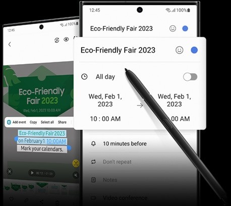 Any pen can write words, but S Pen helps you capture them. Highlight event info from a poster or video, then simply tap to save the date straight into your calendar