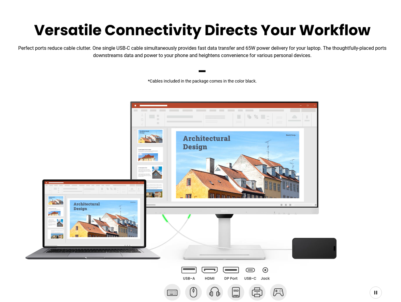 Balance work and life efficiently and easily. With the GW3290QT, switching between devices and activities became even more effortless as one USB-C cable and integrated USB-hub connects all. Showcase your taste with impeccable details and quality, the GW3290QT presents a customizable design that accommodates every lifestyle