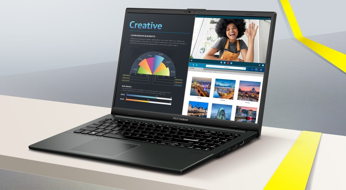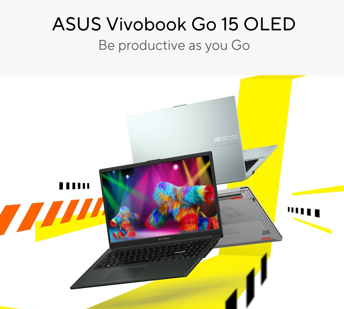lay-flat hinge, physical webcam shield and loads of thoughtful design features — including a gorgeous OLED display —Vivobook Go 15 OLED is the laptop that sets you free!