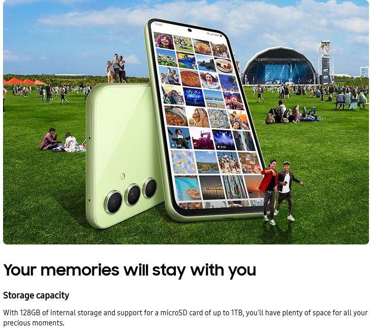The 5,000 mAh battery of the Galaxy A54 5G can last for a long time and can withstand long nights.