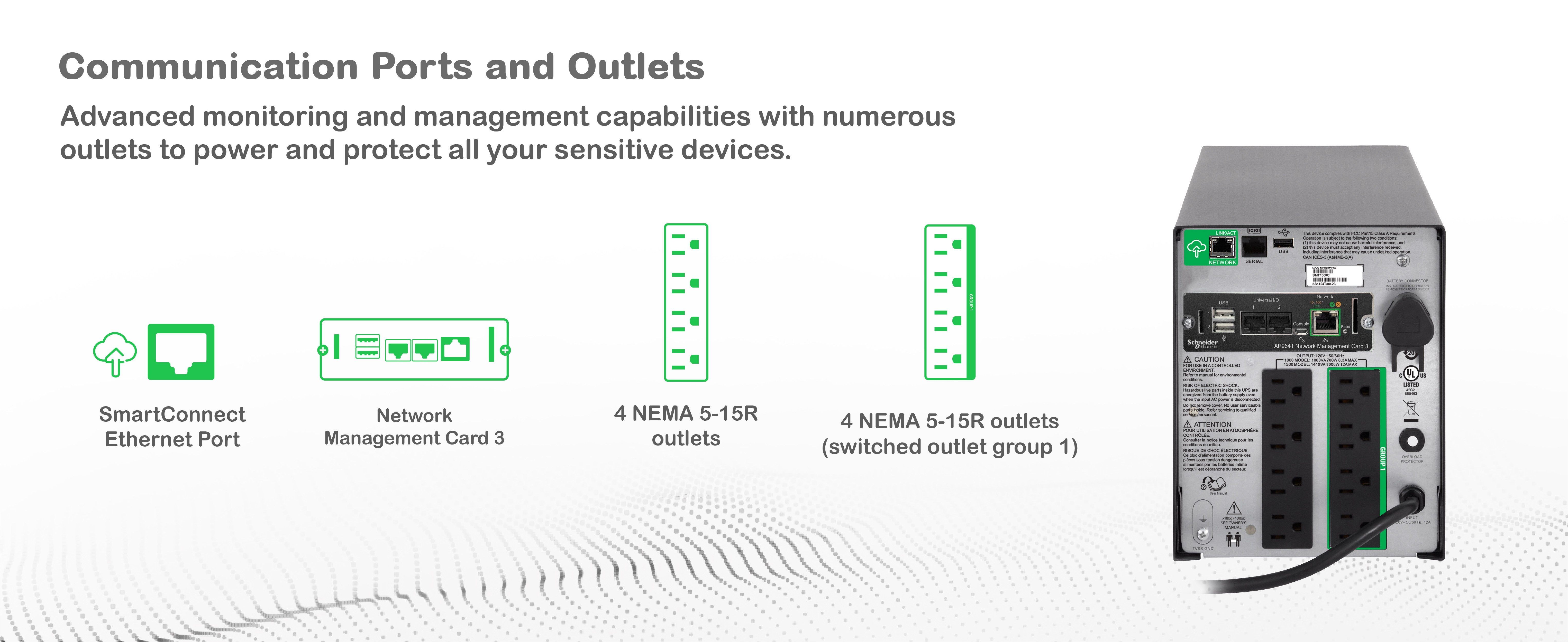 Yes, options for monitoring and managing your UPS include SmartConnect Ethernet Port, EcoStruxure IT, Network Management Card and PowerChute.