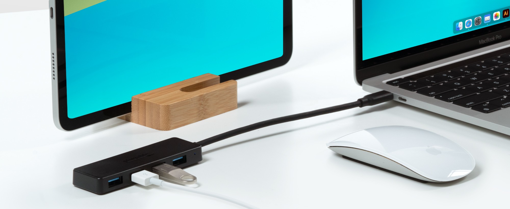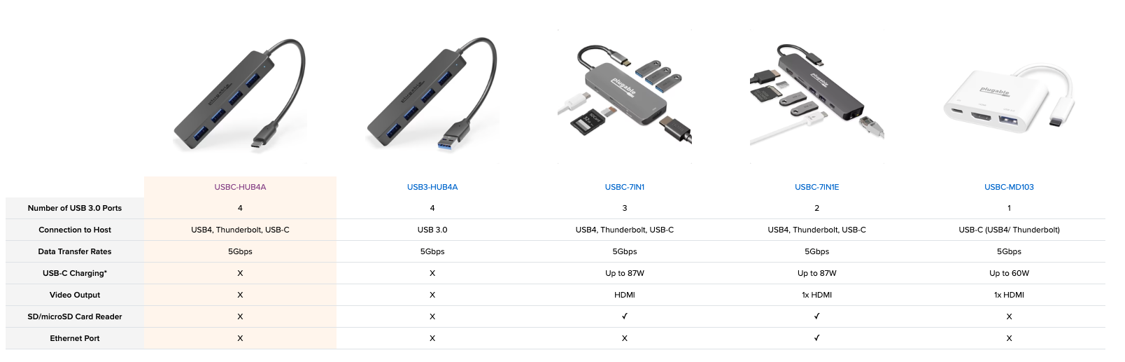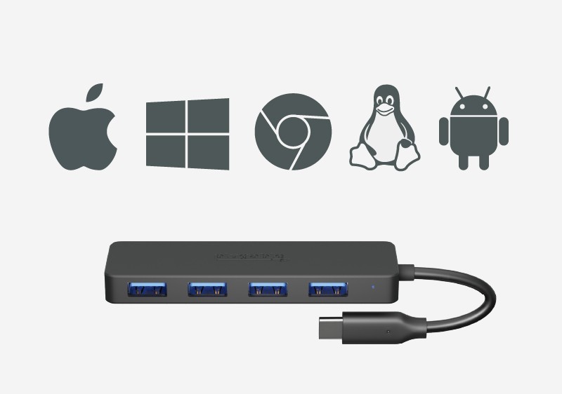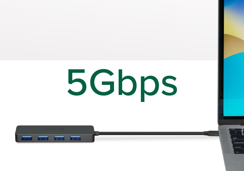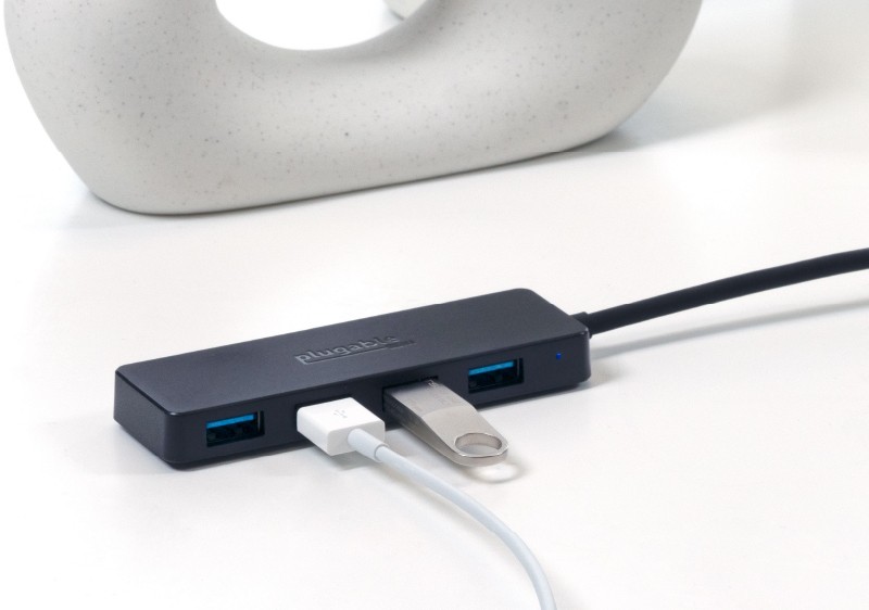 The Plugable USBC-HUB4A might look pretty simple, and that’s because it is. Simply plug it in and sprout 4x USB 3.0 data ports. For MacBook Air. For Dell XPS. For just about anything with a USB-C port.