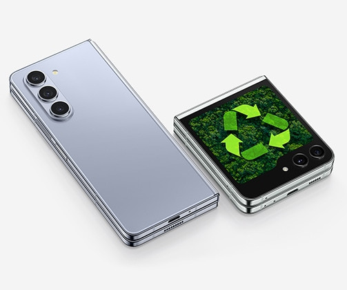 The Galaxy Z Flip5 and Fold5 contain more recycled material than their predecessors, including pre-consumer recycled glass and aluminum, as well as post-consumer recycled plastics sourced from discarded fishing nets, water barrels and PET bottles. 26 , 27