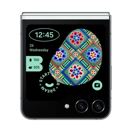 Discover the Galaxy Z Flip5's 3.4-inch front display, designed for self-expression. 1 This compact and eye-catching folding smartphone is as versatile as it is portable.